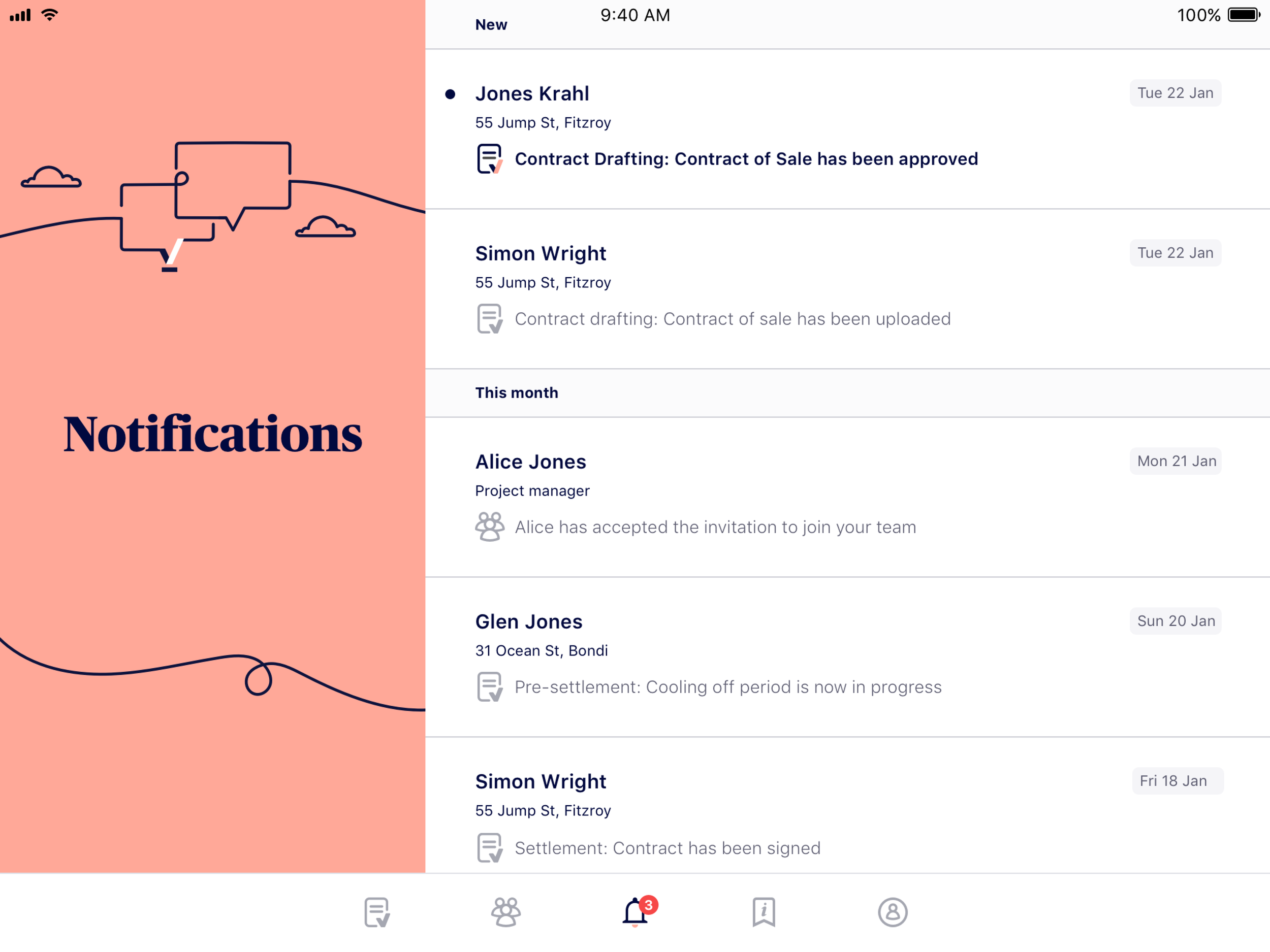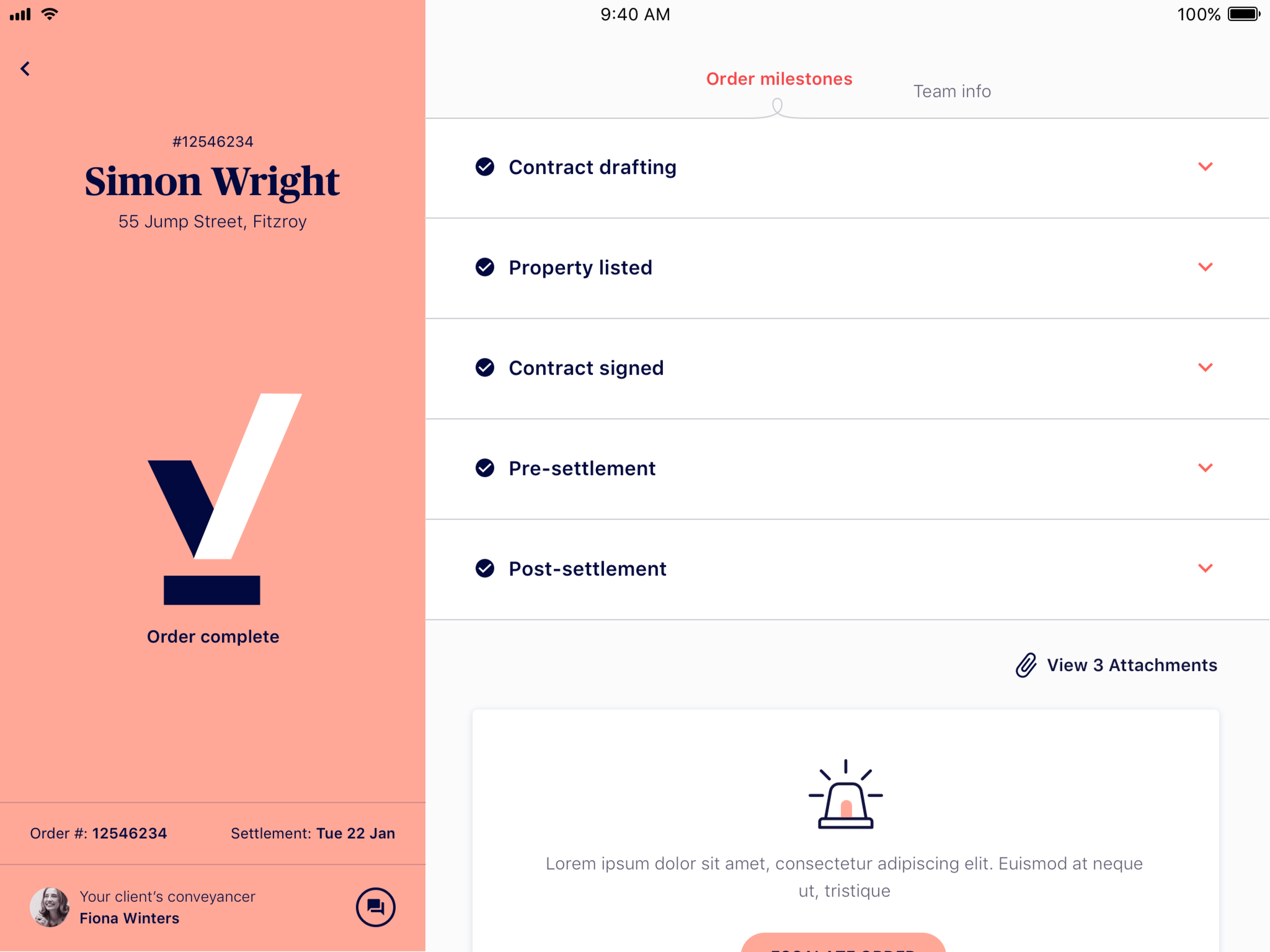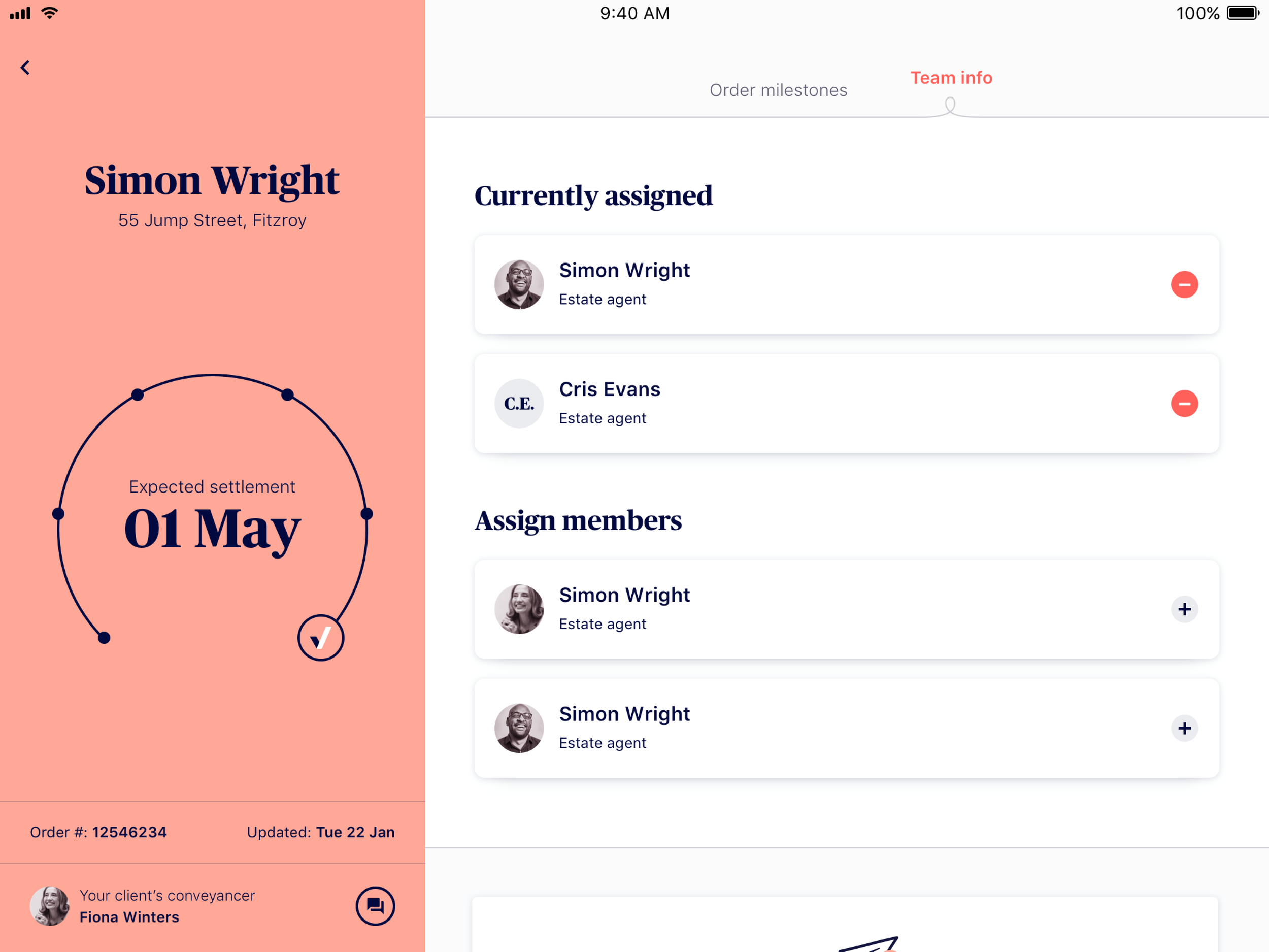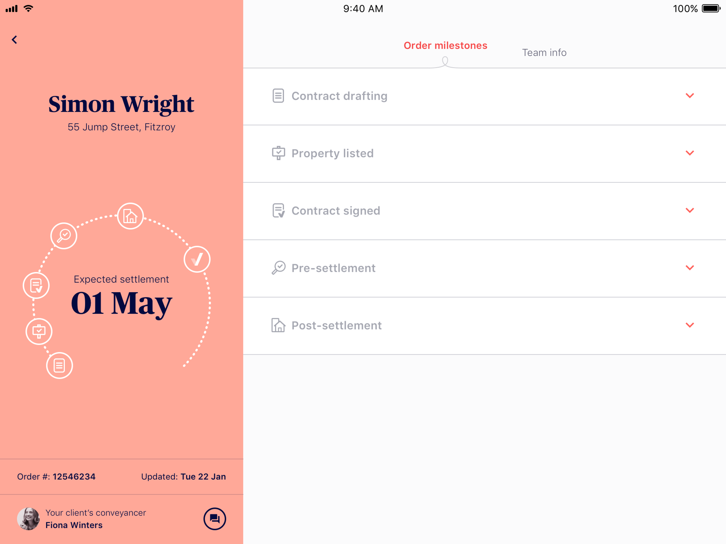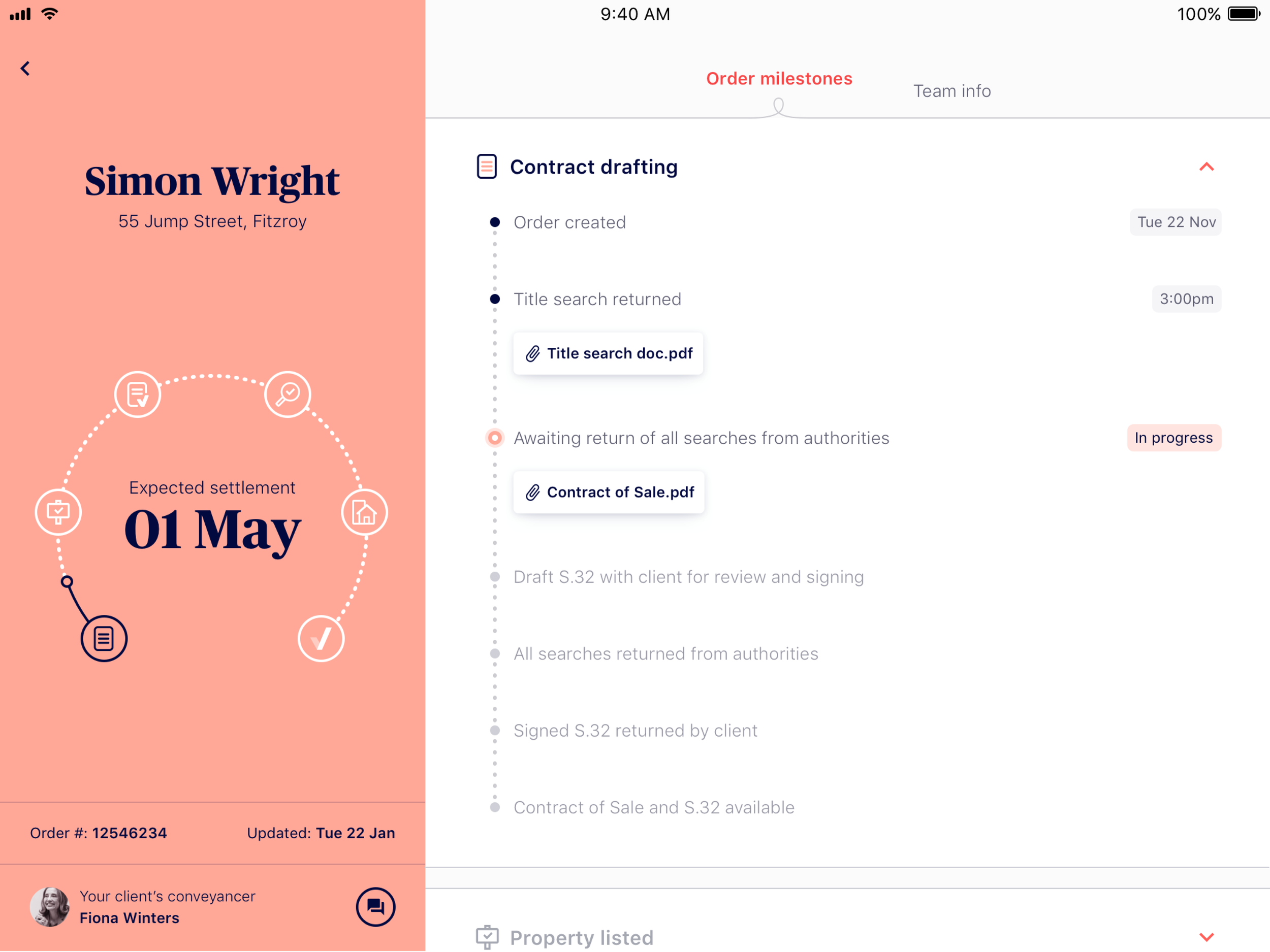 Our team has been working hard to develop a new brand, website, and mobile application that allows agents to easily order conveyancing services for their clients when selling a property. The brand has been designed to convey trust, professionalism, and transparency, while the mobile app tracks the conveyancing workflow in real-time, keeping agents updated on the progress of their sale at any given time. Additionally, the web view integrates seamlessly with real estate agency CRM's, making it easier and more efficient for agents to manage their sales.